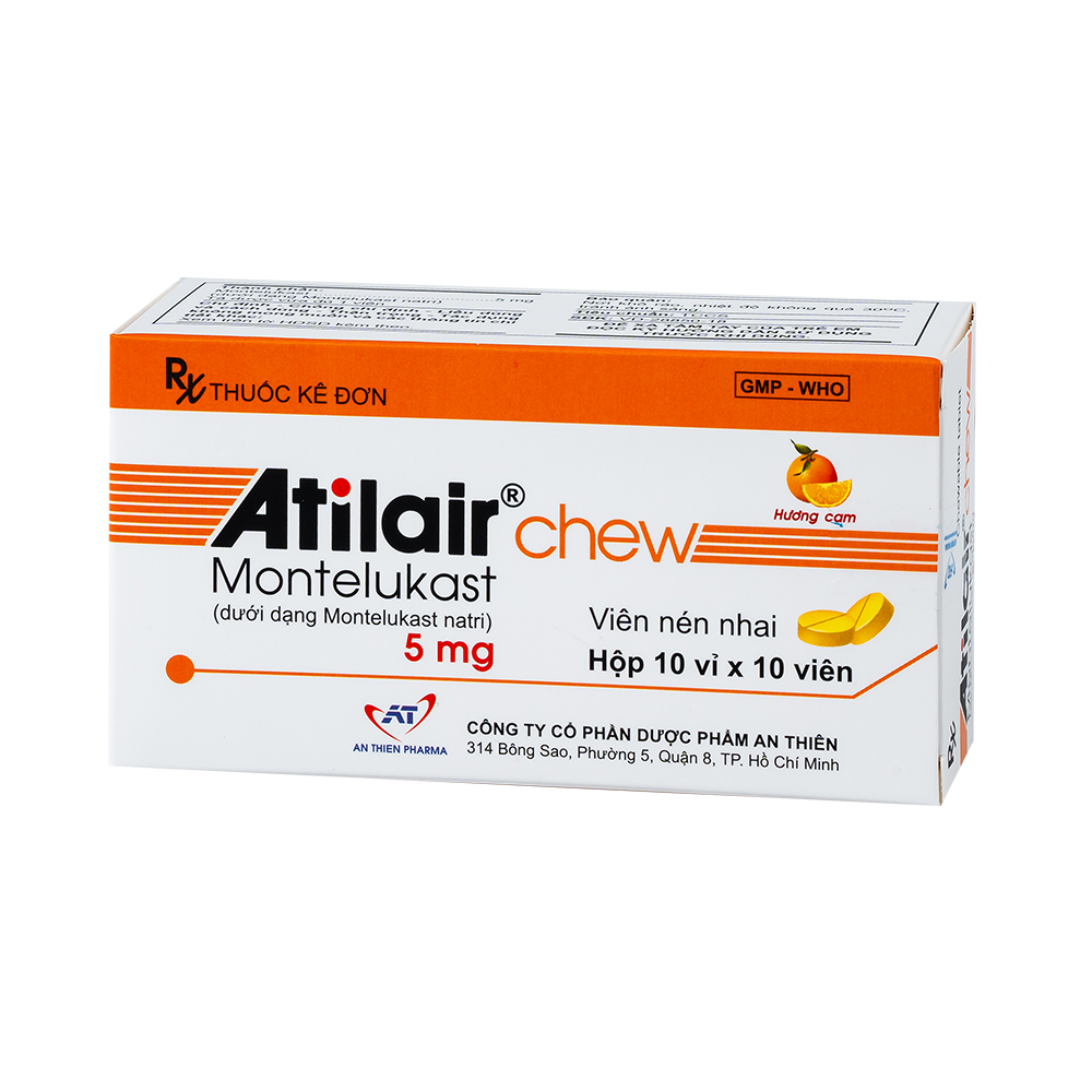 Atilair Chew Montelukast 5mg hộp 10 vỉ x 10 viên nén nhai An Thiên